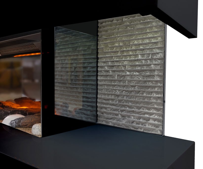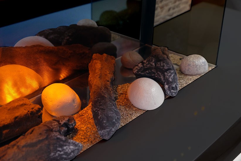 - Possibilité d’intégrer des accessoires de décoration (buches, cristaux rouges,…). Vendus en option