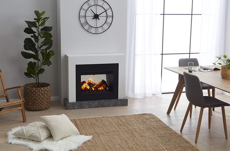 Cette cheminée électrique, moderne et chaleureuse, est un vrai atout décoration.
