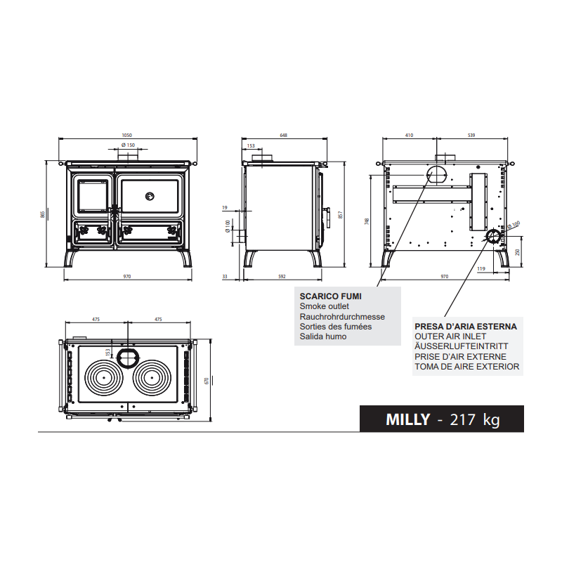Cuisinière à bois encastrable Venezia – 8,3 Kw
