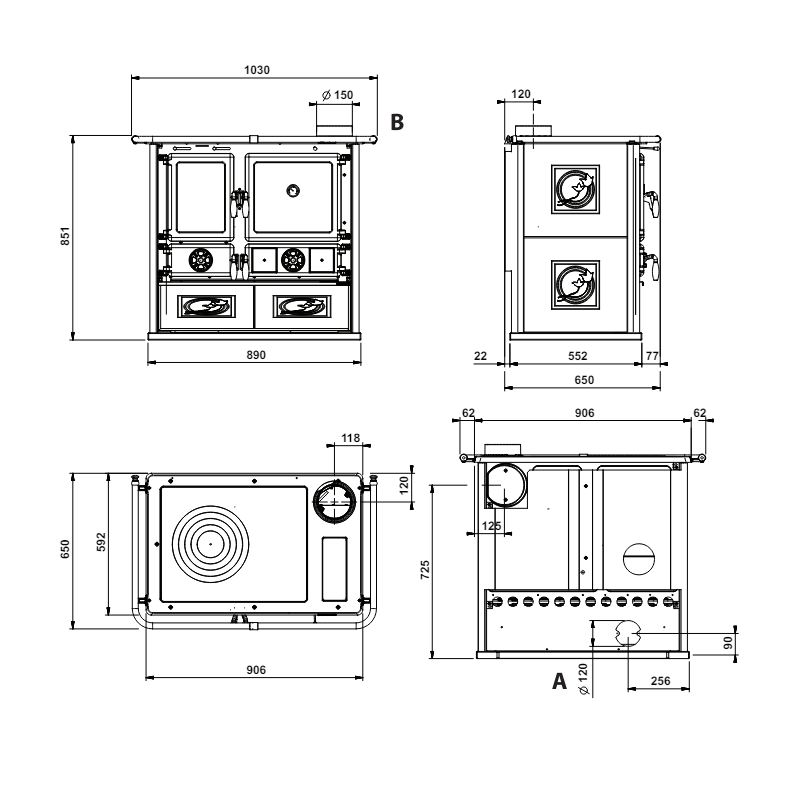 • Poêle à bois avec four