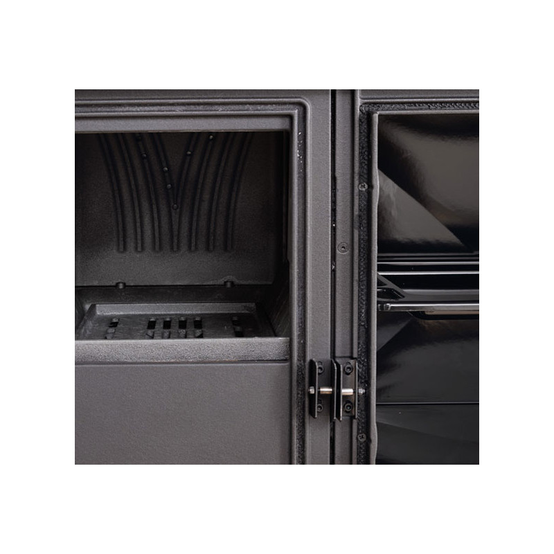 Son revêtement en acier garantit une excellente diffusion de la chaleur, tandis que sa façade en fonte émaillée assure robustesse et longévité. Son foyer en fonte et réfractaire offre une grande rétention de chaleur.