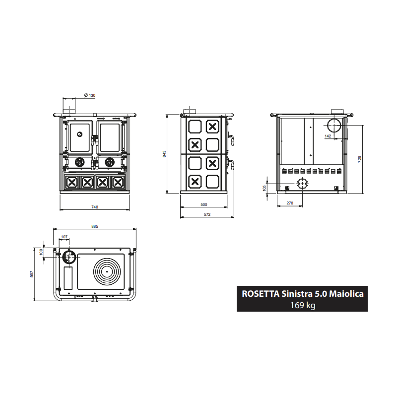 Cuisinière à bois Rosa Sinistra Reverse – 9 Kw