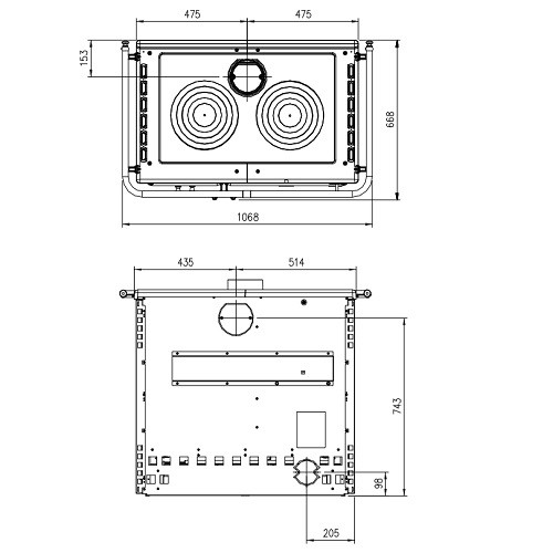 | Hauteur au raccordement du conduit de fumée (arrière) (mm) : | 743 |