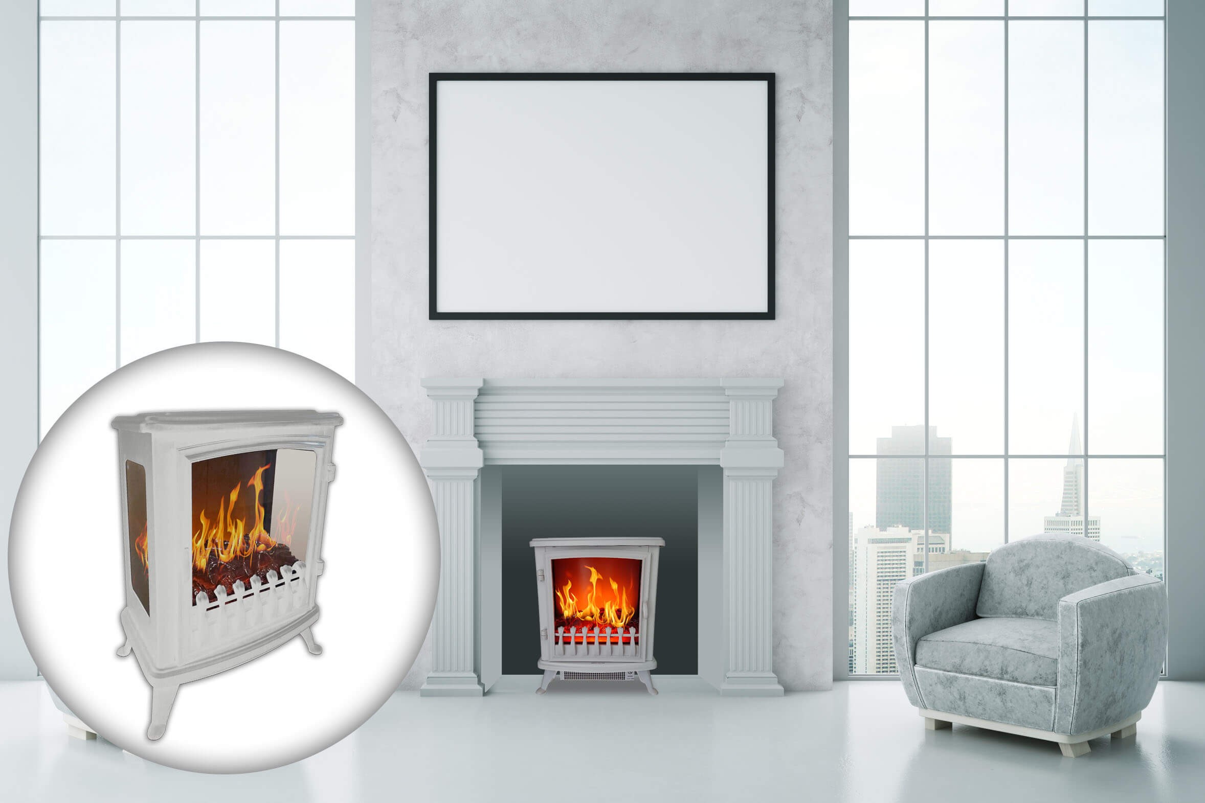 - Sécurité totale car pas de combustion réelle mais un effet flamme très réaliste