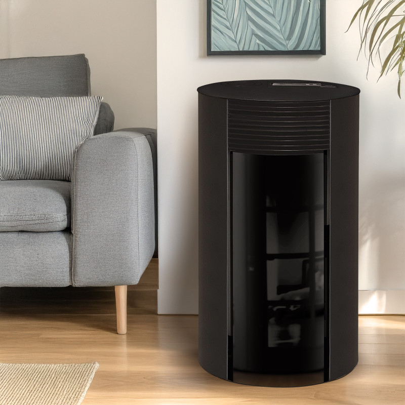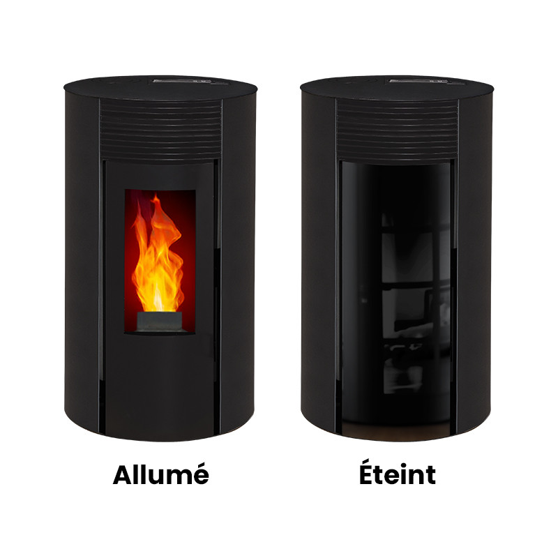 Sa vitre sérigraphiée optimise l’esthétique tout en limitant les dépôts de suie pour une vision claire des flammes et un nettoyage réduit.