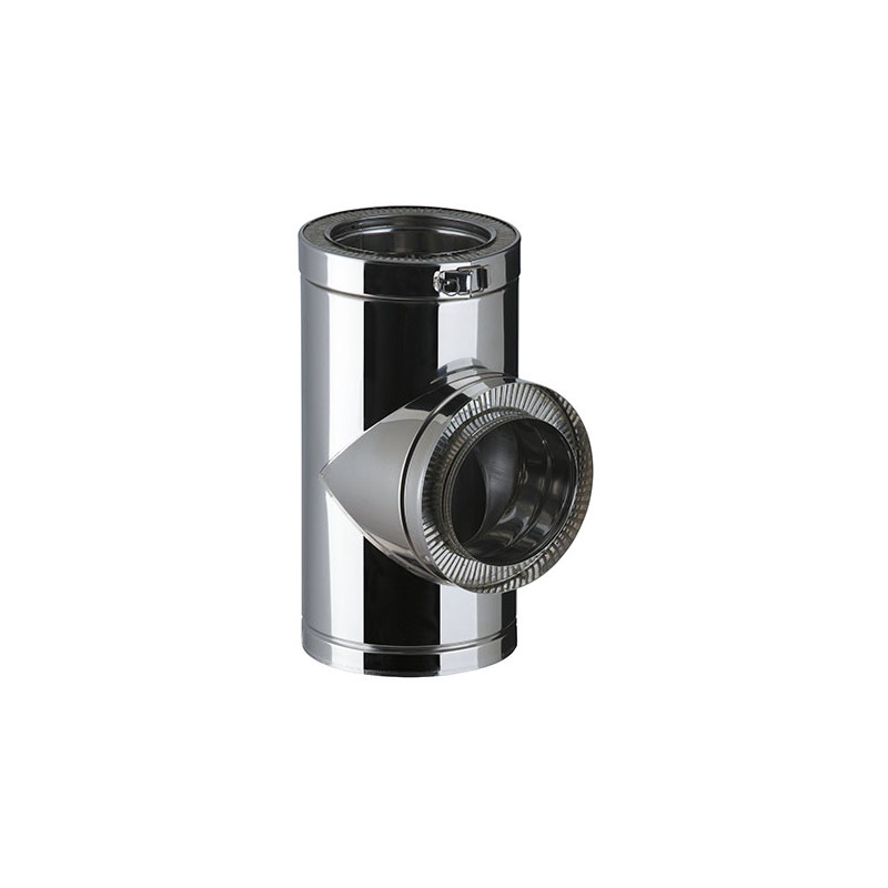 Té à 90° pour réaliser un té de purge en pied de conduit de fumée, ou une jonction entre un raccordement de chaudière et un carneau.